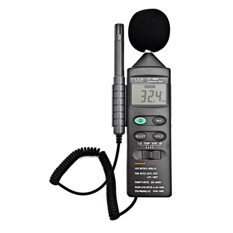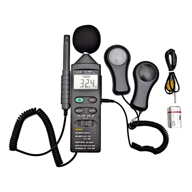DT-8820 - это универсальный тестер окружающей среды, который может выполнять четыре функции: измерение уровня шума, освещенности, влажности и температуры, что делает его идеальным инструментом для профессионального и бытового использования.